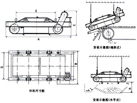 RCDC系列風冷自卸式電磁除鐵器,是在RCDA系列除鐵器的基礎上增加了驅動電機、滾筒、帶刮板的卸鐵膠帶等組成的卸鐵機構。在工作過程中卸鐵機構自動將卸鐵皮帶吸附的鐵磁性物質卸到集鐵箱內,無需停電人工清理,實現(xiàn)了除鐵自動化。
